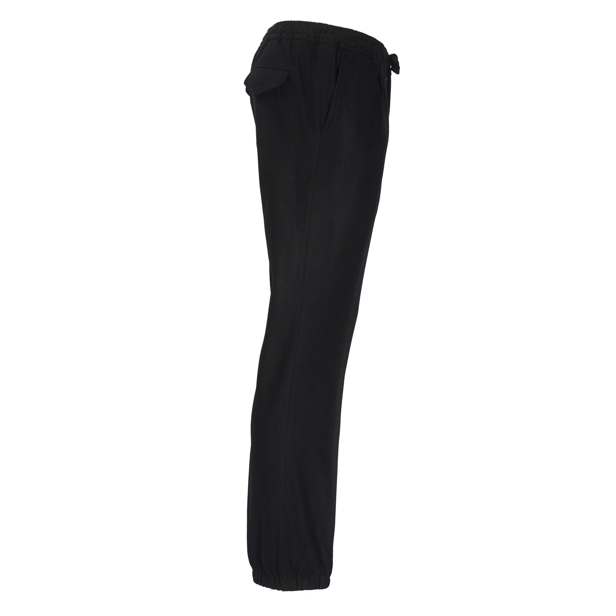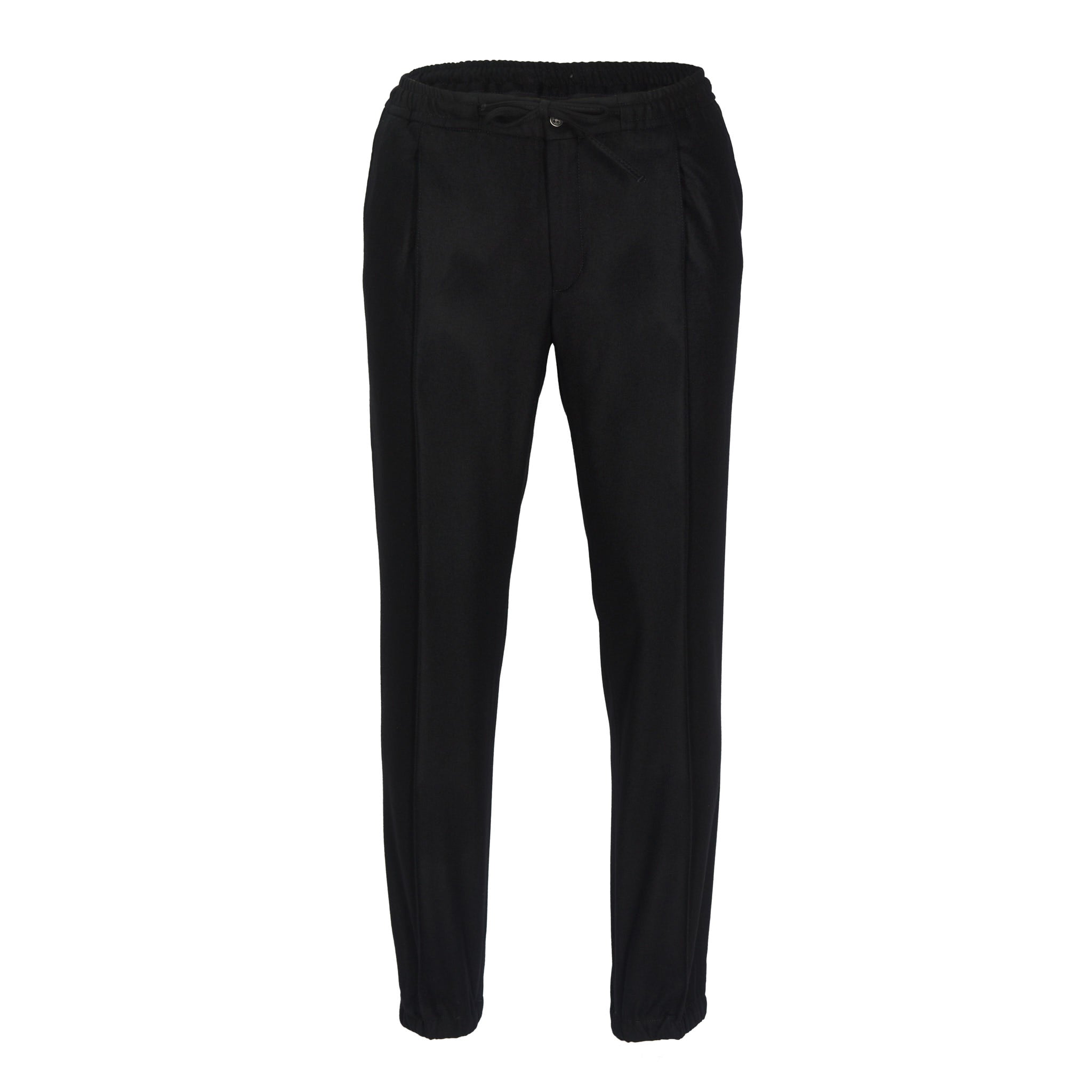La nouvelle pièce préférée, confortable et élégante. Ce jogging noble habille l'homme pour les affaires et les loisirs. Agréable à porter, 100% laine vierge, jambe décontractée, taille élastique froncée avec cordon de serrage et attaches aux chevilles. Le pli de la ceinture se prolonge par une couture rabattue qui confère au pantalon un look élégant. Les poches arrière à rabat boutonné invisible donnent un coup de pouce à l'apparence - même de dos.